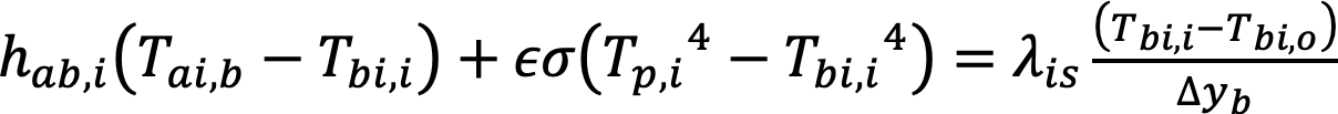 The air circulation below the absorber transmits part of its thermal energy to the bottom surface by convection, and then by conduction through the bottom isolation layer to the outer surface. For any section of the collector, Eq. 9 introduces the thermal condition boundary for the bottom surface, where the conduction of the metallic internal case is neglected due to its thinness.