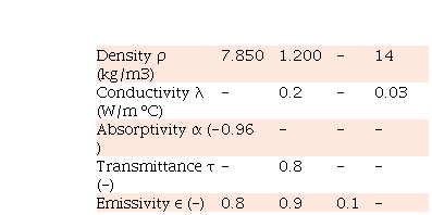 • The thermo-physic properties (thermal conductance, absorbance, and reflectance) are considered as unchanging and the composition of materials homogeneous.