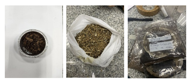 FIGURE 3. Banana biochar, rose plantation residue, mango endocarp hydrochar (left to right)