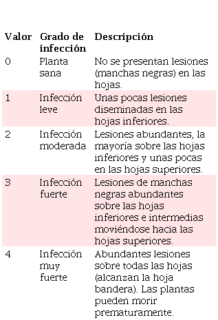 TABLA 1. Escala del grado de infección del complejo mancha de asfalto (CMA) [18]