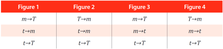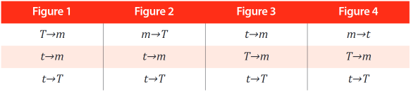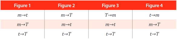 Through these we build the different figures of the syllogism (deductive, inductive, and abductive), and we find four different forms as can be seen in the following tables: [1, 2]