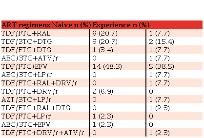 TABLE 1. Antiretroviral regimens currently received by naïve and ART-experienced HIV patients attending a healthcare center in Quito.