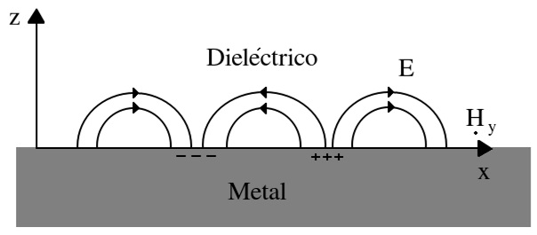 La teoría para lograr excitarlos modos normales o PS se deducirán a continuación considerando dos medios. Primero, a través de una interfaz metal-dieléctrico, con polarización TM.