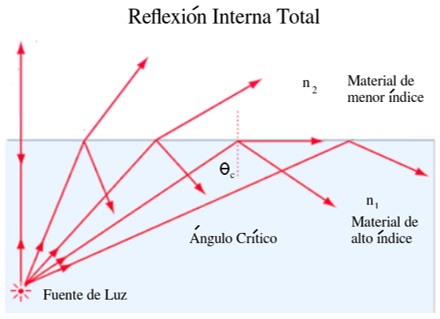 Existe una dirección en la que incide la luz en un medio y es completamente reflejada, ésta dirección se define mediante el ángulo critico Ɵc. El ángulo en el que se logra excitar el PS llamado ƟPS suele ser mayor que Ɵc, provocando que la luz sea reflejada totalmente. Es decir, se refleja toda la energía de todas las frecuencias de la luz, excepto la energía asociada a la frecuencia del PS.