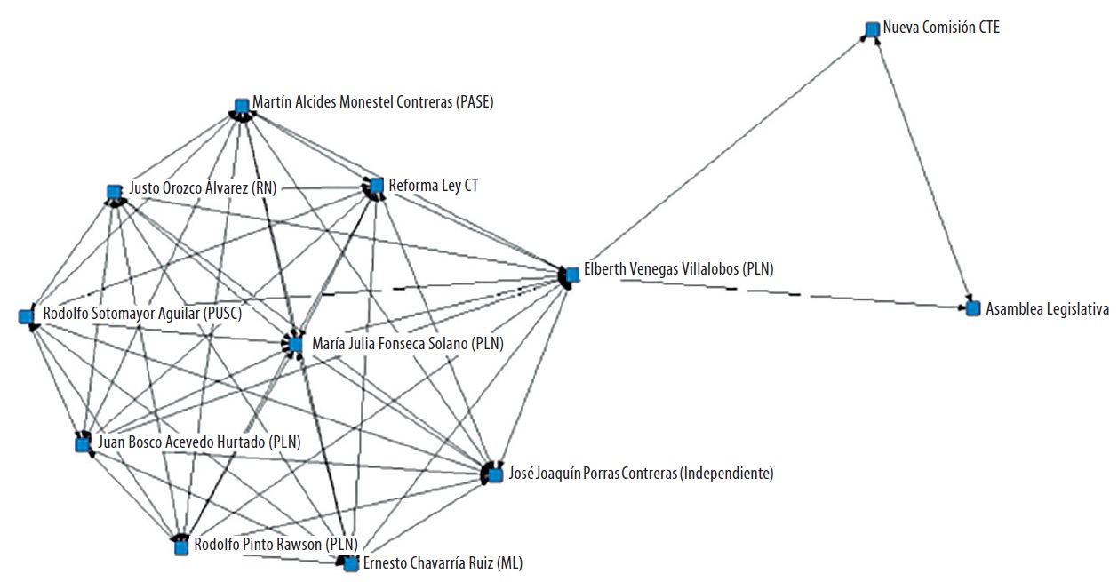 En los diferentes debates académicos y en la esfera de Gobierno se reconoce que los esfuerzos del pasado en materia de CTE son insuficientes, por lo que se requiere de una propuesta integral que vaya desde la escuela hasta la formación del recurso humano en áreas científico-tecnológicas con la perspectiva de “mantener al país competitivo a nivel internacional” (Expediente Legislativo 18773, 2013a). En la AL se forma una Comisión Permanente1 para discutir las principales propuestas y los diversos apoyos en materia de legislación que se requieren; el orden de la agenda en ciencia y tecnología, en una primera instancia, se deja en manos de la Comisión (Grafo 1).