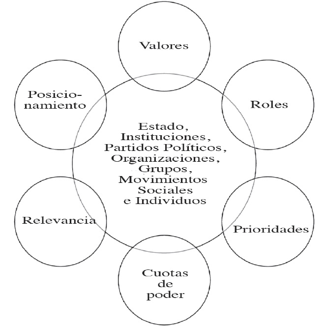 Como lo denota la Figura 3, ¿de qué o quiénes dependen esa selección de cuestiones o a que corresponden a esos intereses?, la autora, refiere que es un complejo campo de fuerzas, que se encuentra en disputa a través de grupos, movimientos sociales, instituciones, partidos políticos, organizaciones e individuos, de acuerdo a su rol, relevancia, cuotas de poder y posicionamientos, puesto que, escogen, seleccionan temas (de acuerdo a sus prioridades), y de la misma forma, eligen su posible solución.