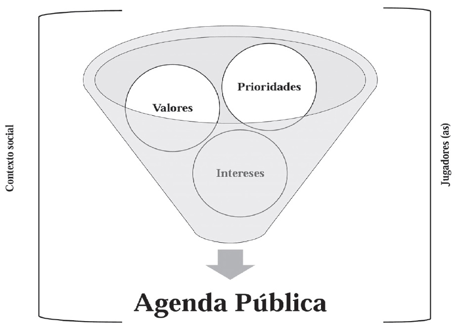 El proceso de considerar cuáles situaciones requiere intervención y su solución, es escogido por las y los elaboradores de política pública, en su formulación y construcción, para ser siguiendo a Nirenberg (2003) verdaderamente politizados o socialmente problematizados2 en las agendas públicas, ya que, esto se traduce en un reflejo de los valores que se establecen como prioritarios en la sociedad.