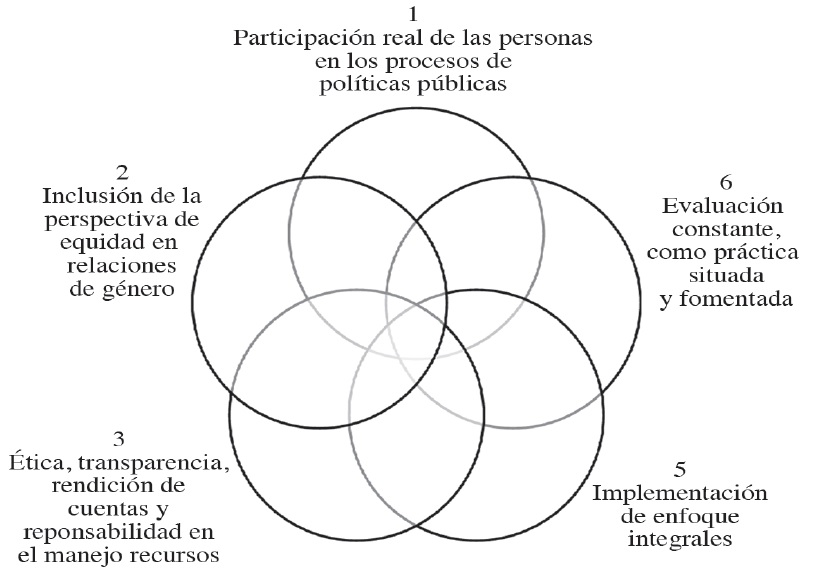 A continuación, se presenta una serie de elementos a forma de principios para ser considerados en todo proceso de construcción de las políticas públicas, de forma integral, que denotan y promueven a la evaluación como un ejercicio orientado a la transformación.