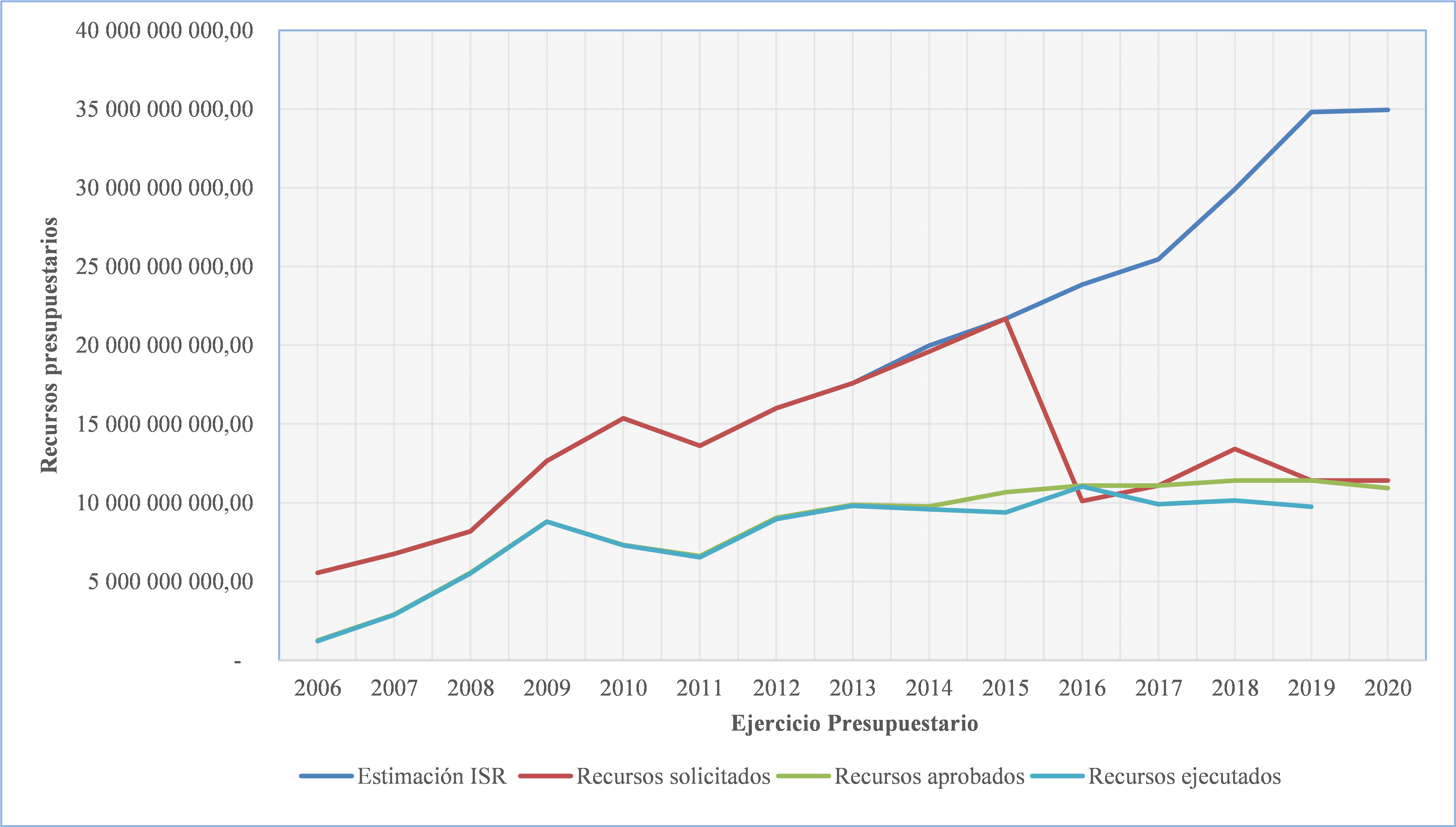 Desde el 2015 es el propio Ministro de Hacienda quien, al iniciar el proceso anual de formulación presupuestaria, le señala al Ministro de Gobernación el monto por concepto de transferencias que deberá incluir en su propio anteproyecto presupuestario, tal y como se plasmó en sus notas DM-0732-2015, DM-0694-2016, DM-0628-2017, DM-0985-2018 y DM-0060-2019. Previo a ese año, las personas funcionarias de DINADECO igualmente proyectaban la totalidad del ISR que debía ingresar al presupuesto institucional, aún y cuando esas proyecciones no terminaran siendo vinculantes. Más bien, de los datos extraídos queda claro que al igual que se ha dado un alza significativa de los recursos por transferencias desde que inicia el periodo en estudio, paralelamente se ha incrementado la brecha entre los montos estimados y los finalmente aprobados en el Presupuesto de la República.