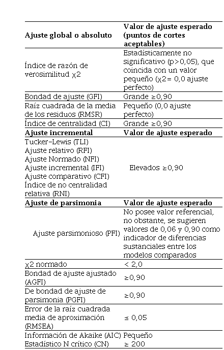 En la siguiente Tabla 4 se pueden apreciar los indicadores más utilizados de acuerdo con cada índice de bondad de ajuste: