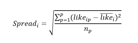 donde p es el partido (o líder), i el encuestado y likeip la puntuación like-dislike asignada a cada partido p (o líder) por cada encuestado i