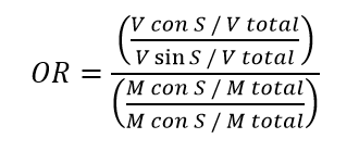 En los casos que corresponda, se muestran los principales estadísticos para las tablas de contingencia, estas son Chi-cuadrado, V de Cramer, Gamma y Odds ratio. Por un lado, la significación del Chi-cuadrado evalúa en qué medida existe una asociación estadísticamente significativa entre las variables[12]. Por otro lado, el estadístico V de Cramer evalúa la fuerza de la asociación entre variables nominales. Por su parte, el estadístico Gamma evalúa no sólo la fuerza, sino también la dirección de la asociación entre variables ordinales –por ello, este estadístico se considera sólo en las tablas con condición de clase (Tabla 5 y Tabla 9)–. Además, los porcentajes totales (100%) se ubican por columnas para analizar la incidencia de las variables independientes (género, condición de clase) sobre las variables dependientes (polarización afectiva, escala like-dislike). Por último, el odds ratio (OR) es la razón de odds (la probabilidad de éxito dividido la probabilidad de fracaso) de ambas categorías de una variable independiente dummy (en nuestro caso, varón y mujer; clase alta y clase no alta; clase baja y clase no baja) y de ambas categorías de una variable dependiente dummy (en nuestro caso, simpatía y no simpatía; o rechazo y no rechazo). A modo de ejemplo, la Figura 2 muestra el cálculo odds ratio (OR) de varones con simpatía por Milei.