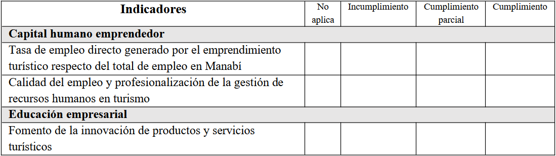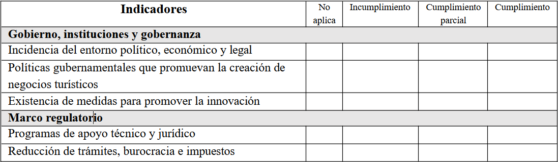 Objective: To develop a model, methodology, y comprehensive tool to evaluate the competitiveness of the tourism entrepreneurial ecosystem using specific indicators.
