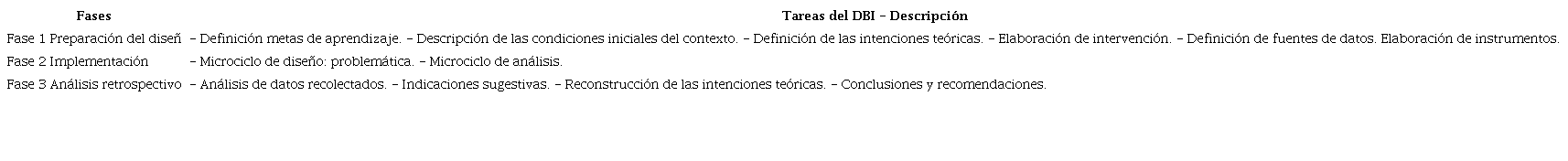 Rinaudo y Dinolo (2010) mencionan tres fases para la preparación de una Investigación basada en el Diseño: preparación del diseño, implementación del diseño y análisis retrospectivo.
