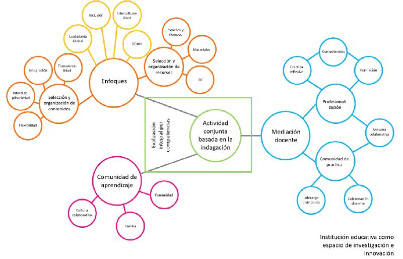 Esta concepción de los procesos de enseñanza y aprendizaje refiere a una mediación docente que se construye a partir de competencias profesionales (Perrenaud, 2004b) que ponen énfasis en la práctica reflexiva (Perrenaud, 2004a) en el seno de una comunidad de práctica, bajo un modelo de profesionalismo colaborativo (Hargreaves & O'Connor, 2018) y liderazgo distribuido (Jolonch & Martínez, 2020), donde la formación profesional atiende las necesidades del aula (Aguavil & Andino, 2019) y se apega a procesos de asesoría colaborativa que transforman la institución educativa en un espacio de aprendizaje e investigación no solo para los estudiantes, sino también para los docentes (Bolívar et al., 2007). Paralelamente, la comunidad de aprendizaje se concibe bajo un modelo colaborativo y contextualizado (Hamada & Scott, 2000) que cuenta con el apoyo corresponsable de las familias y la comunidad (Bautista, 2017; Ospina, 2015).