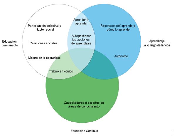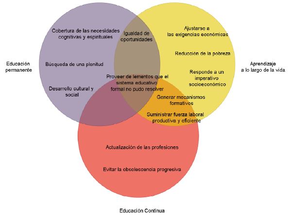 Las formas que han tomado la educación y el aprendizaje son diversas. Términos como andragogía o educación a distancia son hoy en día conceptos que han permeado en el imaginario colectivo y se han instalado en la terminología educativa. Tal proliferación de conceptos propicia que exista confusión semántica y se corre el riesgo de emplearlos de forma indiferenciada. Tal es el caso de la educación continua, educación permanente y aprendizaje a lo largo de la vida, conceptos que suelen asumirse erróneamente como sinónimos cuando existen acepciones que los alejan diametralmente. Sin embargo, existe entre ellos aproximaciones conceptuales que propician esta ambigüedad.
