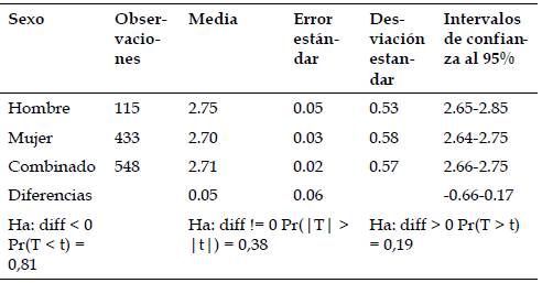 La implementación de la prueba t student para muestras relacionadas en la variable 'uso de medios y recursos didácticos', exhibe que la diferencia de medias entre hombres y mujeres no es significativa, con un valor de 0,05 (Tabla 2).