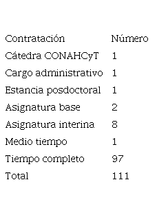 De estas profesoras, diez están contratadas como profesoras de asignatura; ocho, en la modalidad de interinas (también denominada eventuales), y dos, con algún número de horas basificadas.