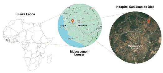 Los proyectos se enmarcaron en la ciudad de Mabessenenh-Lunsar —en adelante se hará referencia únicamente a su nombre abreviado, que es Lunsar— , la más grande del distrito de Port Loko, situado en el centro-oeste del país. Uno de los servicios más importantes que ofrece Lunsar es el Hospital San Juan de Dios, que se cree que da servicio a aproximadamente 152 394 habitantes, entre los que se encuentran quienes habitan en zonas rurales más desfavorecidas.