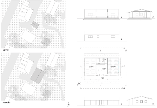 En cuanto a la propuesta constructiva, nuevamente se adaptó a la manera de construir del resto del hospital, a las tradiciones y los saberes locales, pero aportando mejoras constructivas y de distribución espacial interior. Desafortunadamente, no se ha encontrado todavía financiación para este proyecto, por lo que no se ha podido ejecutar, situación habitual en la formación reglada, pues los proyectos que se abordan son por lo general ficticios y no emanan de necesidades reales.
