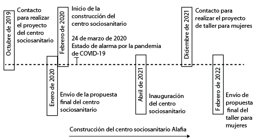 El primer proyecto, el centro sociosanitario, surgió de la demanda de la población y de la necesidad de la propia ONG de contar con una persona para realizar las tareas relacionadas con la arquitectura. Tras la ejecución de este proyecto, se recibió la propuesta de hacer el segundo, el del taller para mujeres. En total, la experiencia duró dos años y medio, pero la pandemia impidió realizar el seguimiento in situ de las obras del centro sociosanitario, y el taller para mujeres no se ha comenzado a construir por falta de presupuesto. Para estudios futuros, sería necesario incluir la visita al país y a la obra para recabar también información relativa al contacto directo con los usuarios finales.