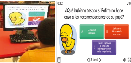 Nivel elemental: Para el alumnado del nivel elemental se propuso una didáctica basada en la lectura de cuentos con valores. Después de leer, se formularon y respondieron preguntas utilizando cuestionarios digitales. Una de las sesiones más significativas fue la décima, cuyo objetivo era “practicar la lectoescritura a partir de un cuento sobre la responsabilidad” (Rossainzz & Méndez, 2019b, p. 36). Después de leer el cuento “Las olimpiadas de Patito”, se plantearon preguntas literales e inferenciales. Los resultados mostraron una eficiente comprensión global y específica.