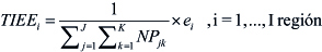 representa el número de eventos esperados en el área i, sexo j y grupo de edad k. De esta manera el número de eventos esperados en el área i, asumiendo un riesgo constante en cada clase de edad y sexo, se expresa a través de: