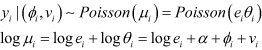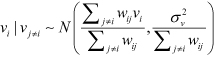 La inclusión de los efectos aleatorios Øi introduce un efecto latente en el modelo para capturar el impacto de factores confusores desconocidos o no observados a nivel del área. Estos efectos aleatorios no estructurados espacialmente pueden explicar la sobredispersión (presencia de mayor variabilidad en los datos) en la distribución del conteo de la incidencia de cáncer infantil yi. Sin embargo, no permite dependencia espacial explícita entre yi. Esta dependencia se incluyó al agregar el efecto aleatorio estructurado espacialmente vi. Para permitir la dependencia espacial, se asume un modelo condicionalmente autoregresivo (CAR)21,22,23) para vi, definido por: