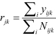Los casos esperados se calcularon de la siguiente manera: considerando i el índice del área de cobertura de la unidad sanitaria, j el índice de sexo y k el índice del grupo de edad, entonces yijk representa el número de eventos de sexo j y grupo de edad k en el área i, y Nijk el número de personas en riesgo por sexo j, grupo de edad k, en el área i.