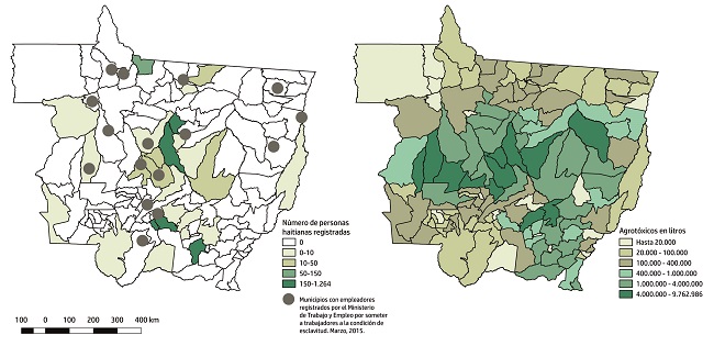 En marzo de 2015, según el Ministerio de Trabajo, en 16 municipios había empleadores registrados por someter a los trabajadores a la condición de esclavitud. En cuatro de ellos - Cuiabá, Nova Mutum, Matupá y Sapezal- había trabajadores haitianos registrados en el mercado formal (Figura 1).