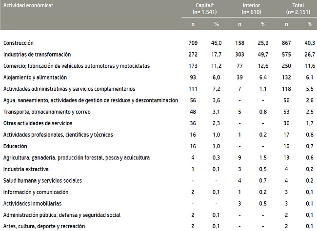 Principales sectores productivos con presencia de haitianos en el estado de Mato Grosso