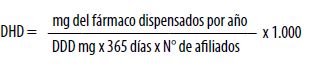 Se cuantificaron los miligramos totales y DDD totales dispensadas en el periodo anual para cada fármaco y con esta información se determinaron las DDD de cada fármaco dispensadas diariamente cada 1.000 afiliados (DDD por 1.000 habitantes por día = DHD), mediante la siguiente fórmula26: