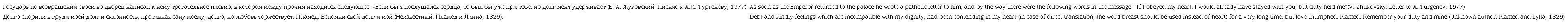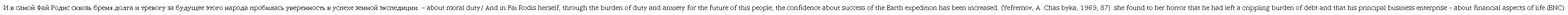 It is necessary to point out that simultaneous use of two meanings (‘financial’ and ‘moral’) in Russian translation made target text more expressive. It should also be considered as a way of personification inducing additional connotations. Generally, this extract needs detailed pre-translational and linguistic analysis, and strong axiological potential of the word duty will be taken into consideration either by native speakers or by Russian-speaking readers using target text and perceiving cultural implications of this concept in accordance with their national world view. Finally, both translators and linguists need not only take an active role as mediators between cultures, but they also intend to offer insights into cultural implications (Nikevi-Batrievi & Kneevi, 2008).