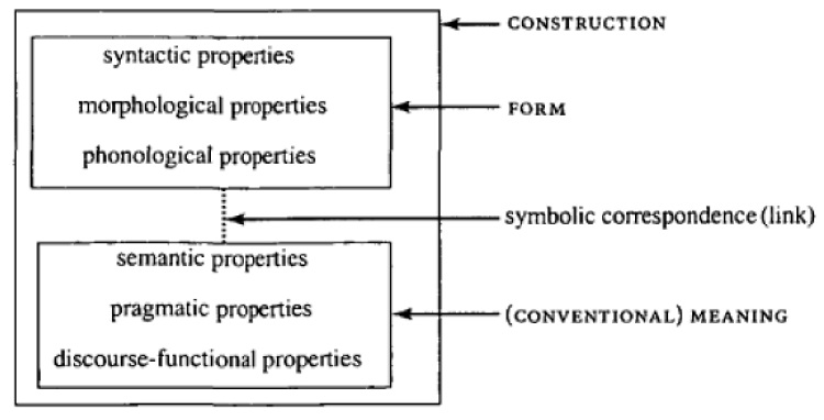 Simply put, constructions are the basic units of language. For CxG, construction is a fixed pairing between form and meaning. It is conceptualised in a higher hierarchy of abstraction of specific linguistic items. Furthermore, it merges into an organic combination of semantic or pragmatic properties. All these properties make it possible for a construction-based outlook to tackle translation problems.