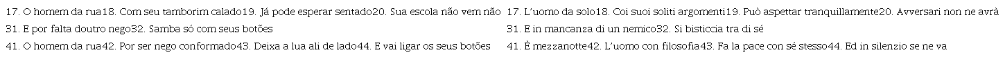 Keywords: Contra Instrumentalism, Sociocultural analysis, Translation of Chico Buarque, Italian translation, Song translation.