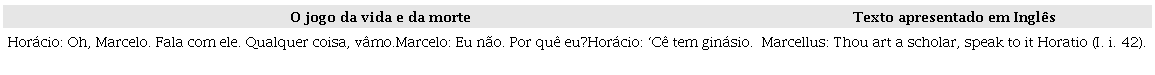 In that regard, I have presented an interpretation of the films A herança, by Ozualdo Candeias, and O jogo da vida e da morte, by Mario Kuperman. In order to do so, I have embraced a theoretical framework hinging upon the notion of transcultural devouring, which, in turn, is based on Oswald de Andrade’s Anthropophagy. In fact, both Candeias’ and Kuperman’s productions can be taken as violent re-readings of Hamlet to the extent that they relocate the drama historically, geographically and culturally towards Brazil – first within the panorama of struggles for land ownership, and then in the context of the commercial circulation of drugs within poverty-stricken neighborhoods.