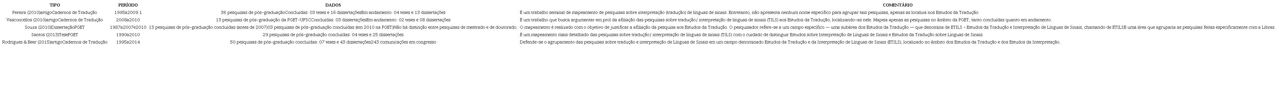 É importante esclarecer que aquelas pesquisas que consideram temas gerais, sem uma abordagem específica da tradução ou da interpretação, podem ser localizadas tanto nos ETLS quanto nos EILS, indistintamente. Devido a isso, decidimos que seria mais coerente listá-las separadamente, como se pode observar, a seguir (Quadro 5).