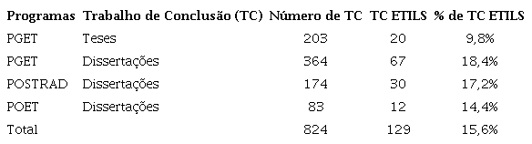 De modo geral, é possível observar o crescimento do número de pesquisas, ainda que haja certa oscilação nos quantitativos de defesas anuais, em cada um dos programas, as quais se devem a diversas variáveis relacionadas: (i) ao número de orientadores(as) específicos(as) dos ETILS disponíveis e demais interessados em orientar pesquisas nos ETILS; (ii) à abertura de vagas por parte dos programas e dos(as) próprios(as) orientadores(as); (iii) ao quanto as pesquisas de mestrado e de doutorado demoram até a defesa; (iv) às políticas de ingresso e de permanência dos programas; entre outros. Ainda que essas variáveis impactem a produção de teses e dissertações fazendo com que ela oscile, observamos que as pesquisas dos ETILS já fazem parte dos programas, sendo uma parcela significativa de sua produção anual, a qual não pode ser ignorada.