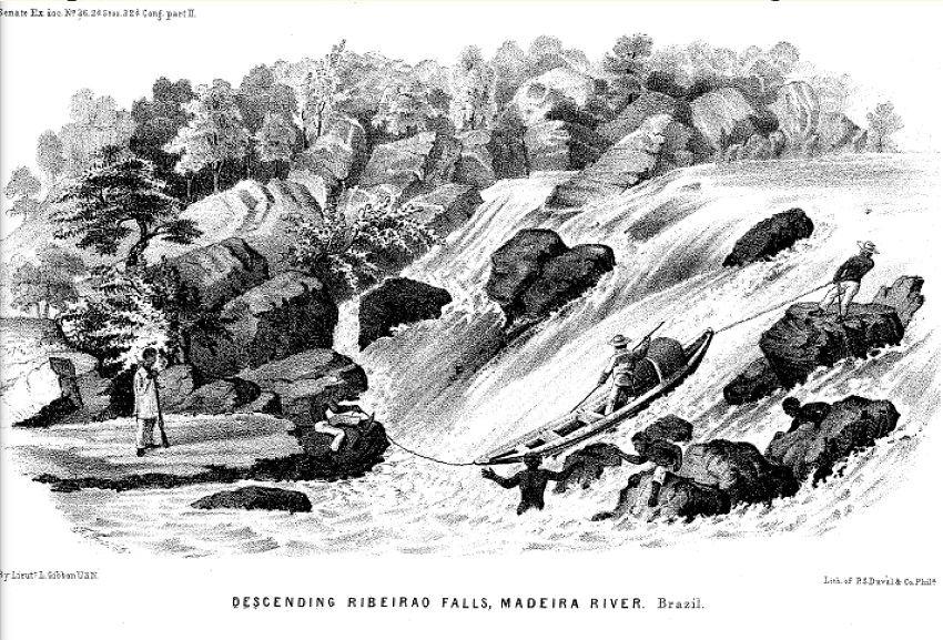 Chegou da Bolívia à região do Alto Madeira em finais de setembro de 1852, destacando as dificuldades da descida e locomoção pelas quedas da cachoeira de Ribeirão no dia 23. No dia seguinte, descreveu a violência de outros cursos d’água, como das corredeiras de “Periquitos” e “Araras”. Em 26 mencionou a passagem pela queda de Pedreneira, passando pela chamada de Paredão. Nos dias seguintes, em meio às descrições físicas das águas e do relevo, aparecem os registros de grupos étnicos que compuseram a viagem, entre eles os Caripuna, Jacaré, Mura, entre outros; como também os “negros”, importantes para a conclusão da viagem. Em finais de outubro, chegaram à boca do Madeira, que deságua no grande Amazonas. Desta jornada, apresentamos algumas ilustrações do próprio autor: