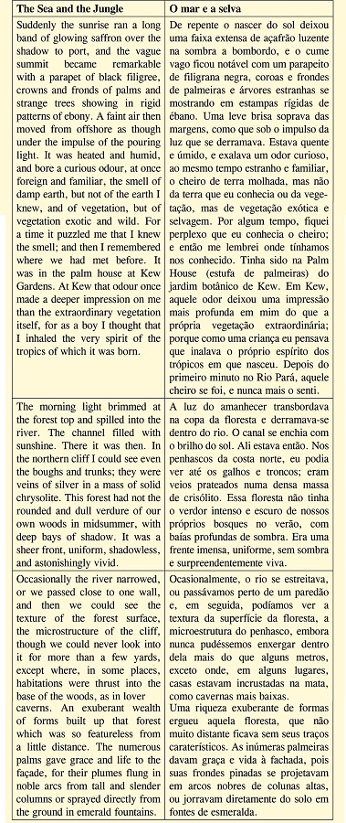 O relato de Tomlinson, apesar do preconceito, apresenta uma nova versão da Amazônia, uma versão literária, poética, razão pela qual foi escolhido para esta tradução comentada.