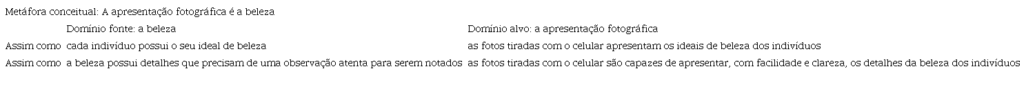 Identificam-se as metáforas conceituais cujos detalhes são apresentados nos quadros 1 e 2: