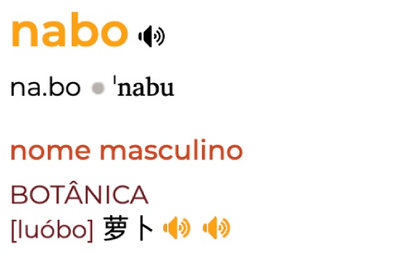 Quanto às palavras, objetos ou espécies biológicas que não se encontram uma correspondência na língua de chegada, em vez de optar pelo seu nome chinês ou pelo pinyin, um sistema de romanização da fonética da língua chinesa, a estratégia mais utilizada na prática ora é adotação de um conceito “semelhante”, ora é a invenção de um nome com o objetivo de facilitar o seu significado para o público-alvo, ignorando a particularidade tanto da palavra original como desse conceito optado. Encontra-se nos restaurantes chineses outro exemplo representativo que é a fruta de origem chinesa, Myrica rubra (em Chinês: 杨梅, yáng méi). Para muitos falantes da língua portuguesa, o nome mais familiarizado deve ser “morango chinês”, o qual é uma facilitação de tradução, associando esta com outra fruta totalmente diferente, porém mais encontrada no Brasil e em Portugal. Também há quem confunde esta fruta típica da Ásia com o medronho, nomeadamente, Arbutus unedo devido às suas caraterísticas similares apresentadas, cuja distribuição natural encontra-se na Bacia do Mediterrâneo. Entretanto, outro fenômeno muito comum é a tradução do legume “nabo” para “萝卜(luó bo)” em Chinês, uma vez que “nabo” é o nome popular de Brassica rapa enquanto o luó bo, de facto, se refere ao Raphanus raphanistrum, pertencendo a dois gêneros biográficos desiguais (figura 1). Apesar de existir alguma semelhança no concernente à aparência dos seus frutos, o nome correto de “nabo” na língua chinesa é “芜菁 (wú jīng)”, que é efetivamente uma planta menos conhecida na China e não muito amplamente utilizada na culinária deste país.