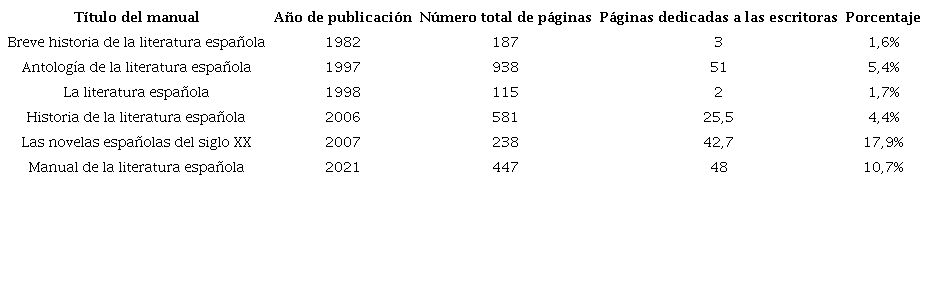 3. Las escritoras españolas presentadas en los manuales de literatura