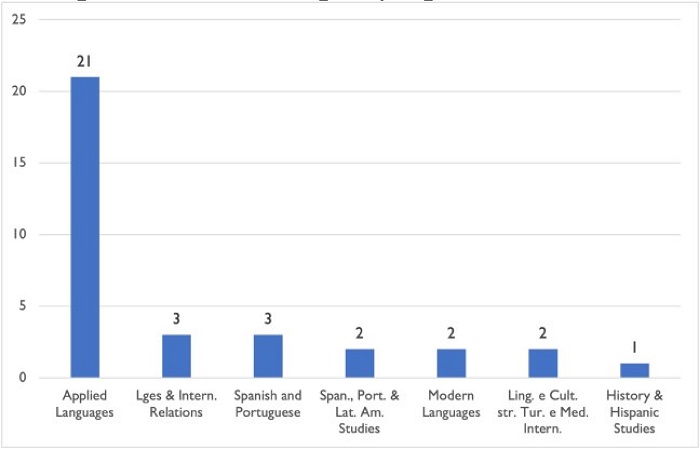 TGPI had 26 regularly attending students: roughly 60% Portuguese and 40% mobility students. TGPF had eight students involved in the project, approximately 60% mobility and 40% Portuguese. All students were enrolled in the third and final year of their undergraduate degrees. Both classes are compulsory in the undergraduate programme in Applied Languages with a major in Translation. As a result, most of the students taking these two classes were enrolled in Applied Languages, 17 at FLUP and four at French universities. However, there were also students from other undergraduate degree programmes who were taking these classes as electives, as shown in Figure 2.