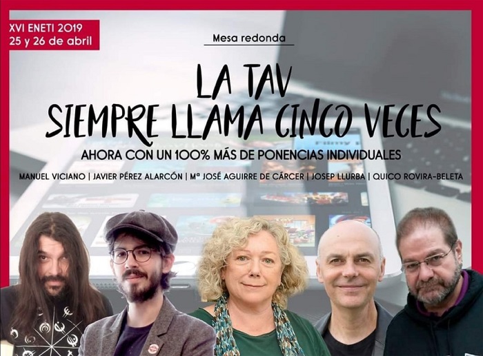 Ciertamente, cuestiones como la visibilidad o la falta de ella también tienen cierto impacto en cuanto a la presencia de profesionales hombres y mujeres en los congresos de traducción audiovisual, algo que ya habíamos mencionado en el plano académico. Como ejemplo visual podemos echar un vistazo a los componentes de la mesa redonda «La TAV siempre llama cinco veces» dentro del XVI Encuentro Nacional de Estudiantes de Traducción e Interpretación (ENETI) celebrado en 2019 en la Universidad Pablo de Olavide de Sevilla.