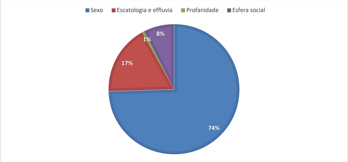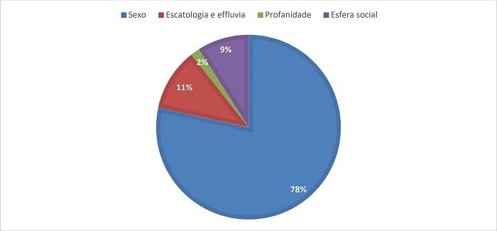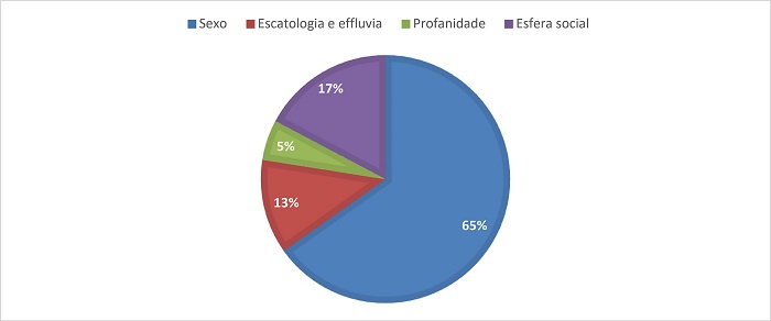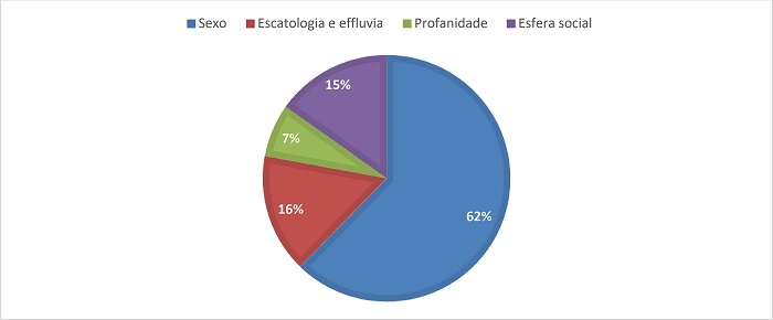 Como dissemos, as esferas semânticas afetadas pela maioria das formas de turpilóquio referem-se à esfera sexual, à origem e à morte do homem, à escatologia, sacralidade (profanidade e blasfêmia)2 e à esfera social (status social, posição política, profissão etc.). De fato, a função de marcador social e de identidade do turpilóquio, uma vez que reforça o tecido social e a identidade do grupo por meio do compartilhamento de um sistema sociocultural, tem sido a razão pela qual as palavras tabu resistiram a todos os tipos de censura linguística (Tibo, 2016).
