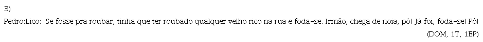 Todavia, no PE o emprego de “Foda-se!” tem quase exclusivamente função de interjeição3, como emerge dos exemplos do minicorpus português: