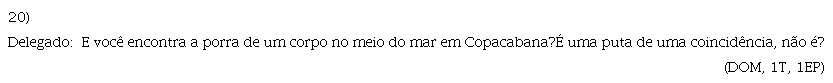 Nos dois seriados brasileiros, a forma tabu mais empregada para as respostas neurológicas é “porra!” com 326 ocorrências, com função de imprecação e de interjeição, das quais 47 ocorrências na forma apocopada, com função de interjeição: “Pô!”. Quanto à forma tabu “Caralho!”, ela chega a 170 ocorrências, com função de imprecação, sendo a segunda forma tabu mais utilizada no minicorpus brasileiro e a primeira no minicorpus português.