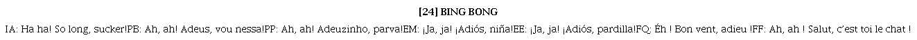 Entre las dos variedades del portugués encontramos diferencias en contextos morfo-sintácticos y pragmáticos de uso del morfema -inho(a). En PB los encontramos en formas de tratamiento nominales: Nojinho, Macaquinha, Topetinho, mocinha; en sustantivos: aviãozinho, trabalhinho en adjetivos: que gracinha, tadinha: en adverbios: melhorzinha, tudinho (Silva & Fernandez, 2017). Aunque no hayan aparecido en el corpus también ocurren con verbos: correndinho, o pronombres: euzinho. En PE lo encontramos sobre todo en saludos: boa noiticinho; adeuzinho parva y en formas nominales de tratamiento en saludos: adeus docinho (forma nominal dirigida a la niña). En formas nominales dirigidas a mujeres está la frase que identifica al piloto brasileño o carioca que seduce a la madre: Vem voar comigo, Gatinha, que se mantiene en todas las versiones, excepto en FF, traducida a petit chat. (cf. (Rebollo-Couto et al., 2017). Para los ejemplos en portugués conferir [7], [12], [24], (29), (44) y (54).