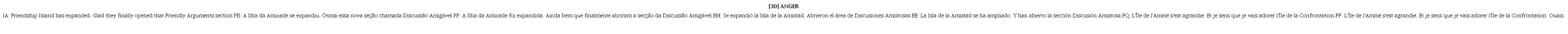 La emoción Anger se presenta en la película como: That’s Anger. He cares very deeply about things being fair. Se trata de una emoción moralmente negativa, que se representa de forma ficcional sobre todo a través de cuatro contextos de palabras tabús: expresividad negativa (críticas y desacuerdos), ironía, descortesía o insultos y también metadiscurso. Para la expresión de furia/ira la intensificación multimodal está muy presente, con intensificación prosódica y tensión de calidad de voz en las realizaciones descorteses intensificadas por palabras tabús.